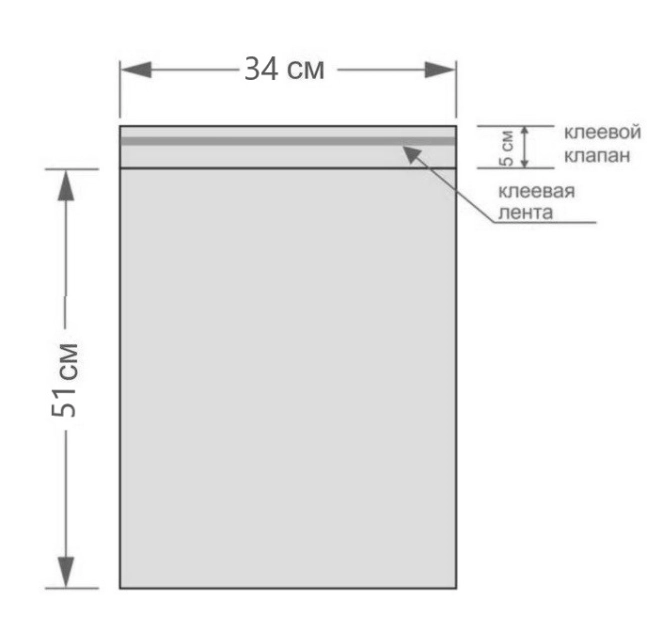 Пакеты ПВД размером 34*51 см с клеевым клапаном 5 см изготовлены из первичного полиэтилена высокого давления (ПВД) плотностью 75 мкм.